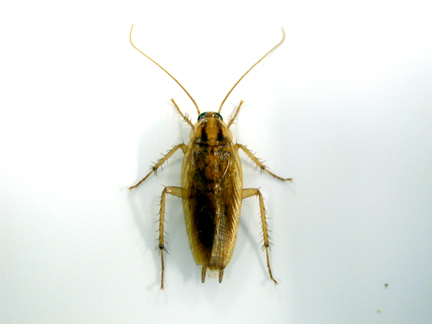 But German cockroaches aren’t just the scourge of the restaurant industry; they’re also the most common roach species found in homes, apartments, and hotels. This is partly due to their relatively small size — adults are 1/2 to 5/8 inch long — so that they’re able to squeeze into tiny cracks and crevices, and their ability to multiply rapidly. One pair can indirectly produce 10,000 descendants in just one year.